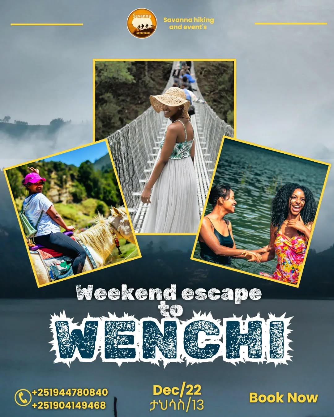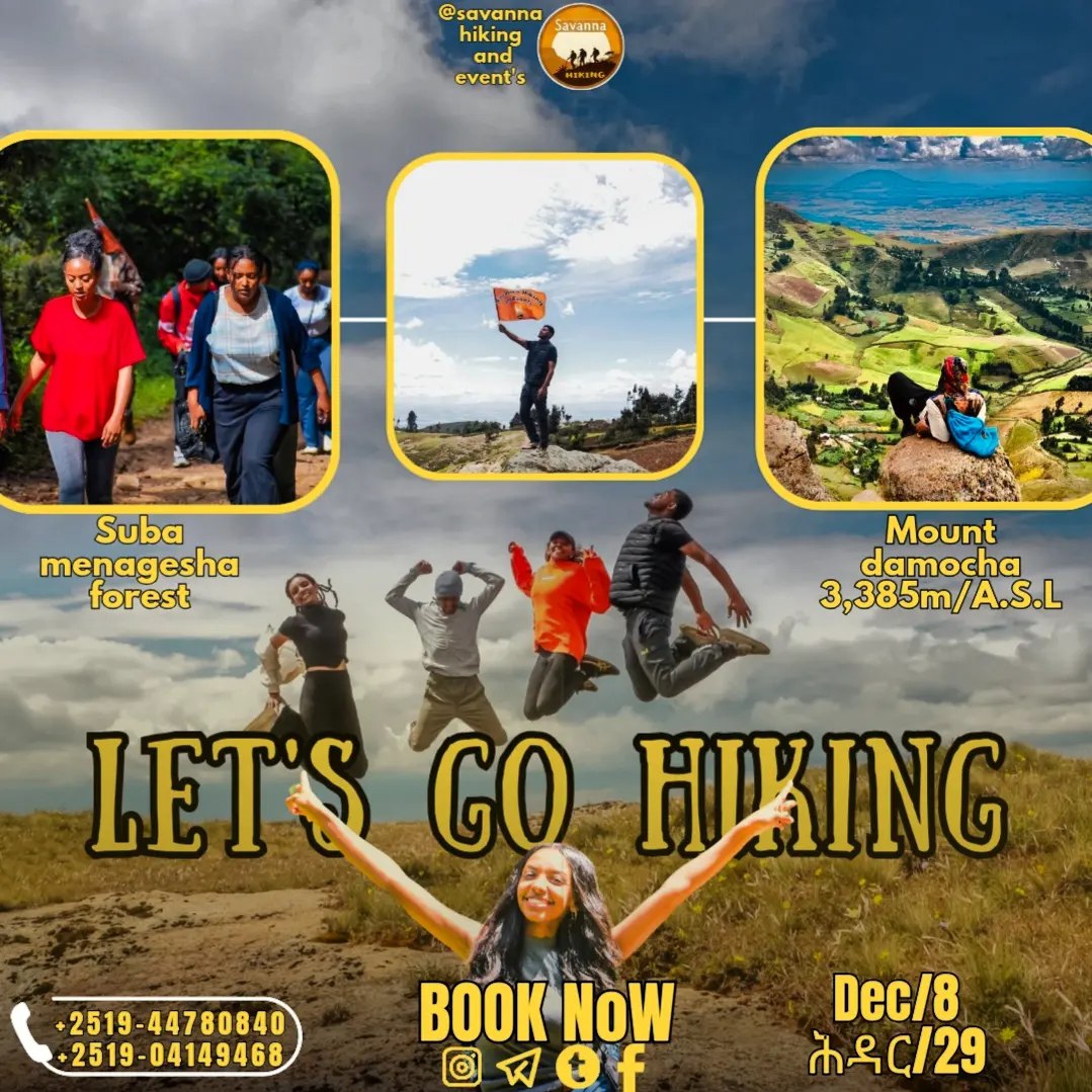 Savanna Hiking and Events is a professional tourism and events company based in Ethiopia. Established by a passionate team of tourism graduates, we specialize in organizing hiking trips, camping adventures, and cultural explorations. Our goal is to inspire travel, promote domestic tourism, and provide high-quality services that create unforgettable experiences for our clients. With the support of regional tourism bureaus and the Ethiopian Hiking Association, we offer safe, immersive, and enriching journeys across the country's breathtaking landscapes